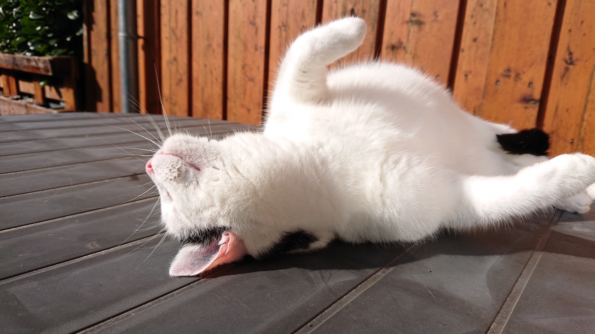 Die Nachbarkatze und ich, wir sonnen uns jetzt noch ein wenig.