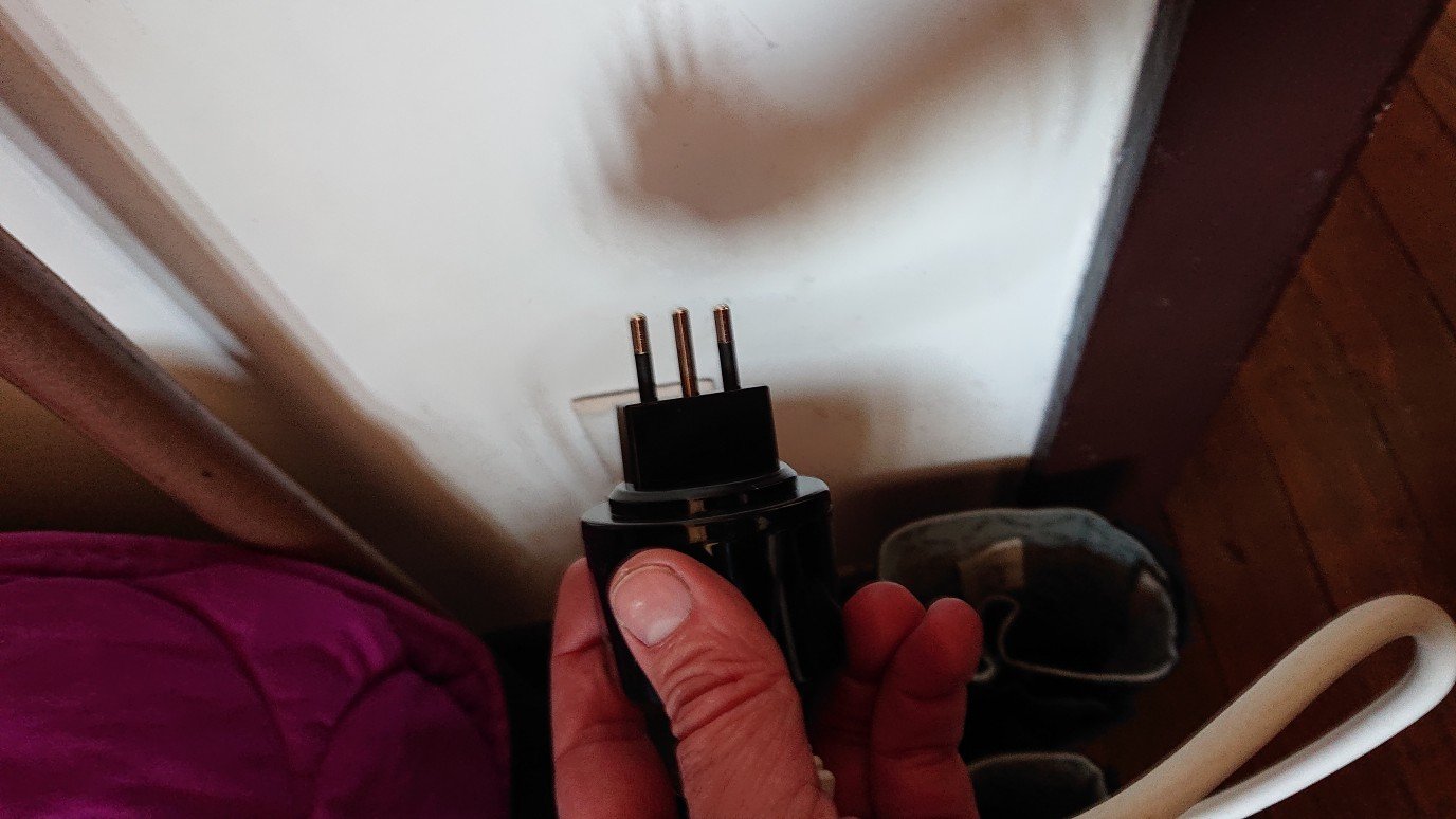 Update 2: Den bringe ich gerade noch. In Südamerika gibt es eine ganze Reihe verschiedener Steckertypen. Hier haben wir die Dreierreihe:
