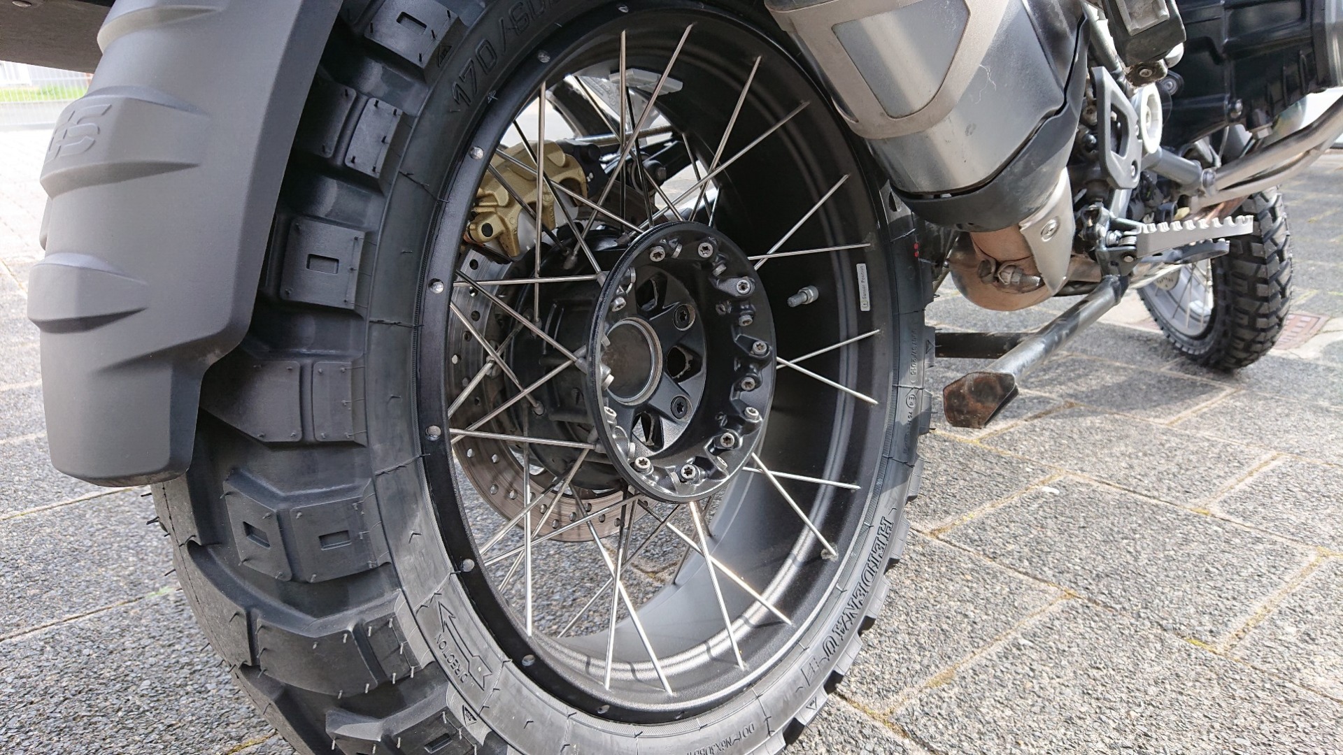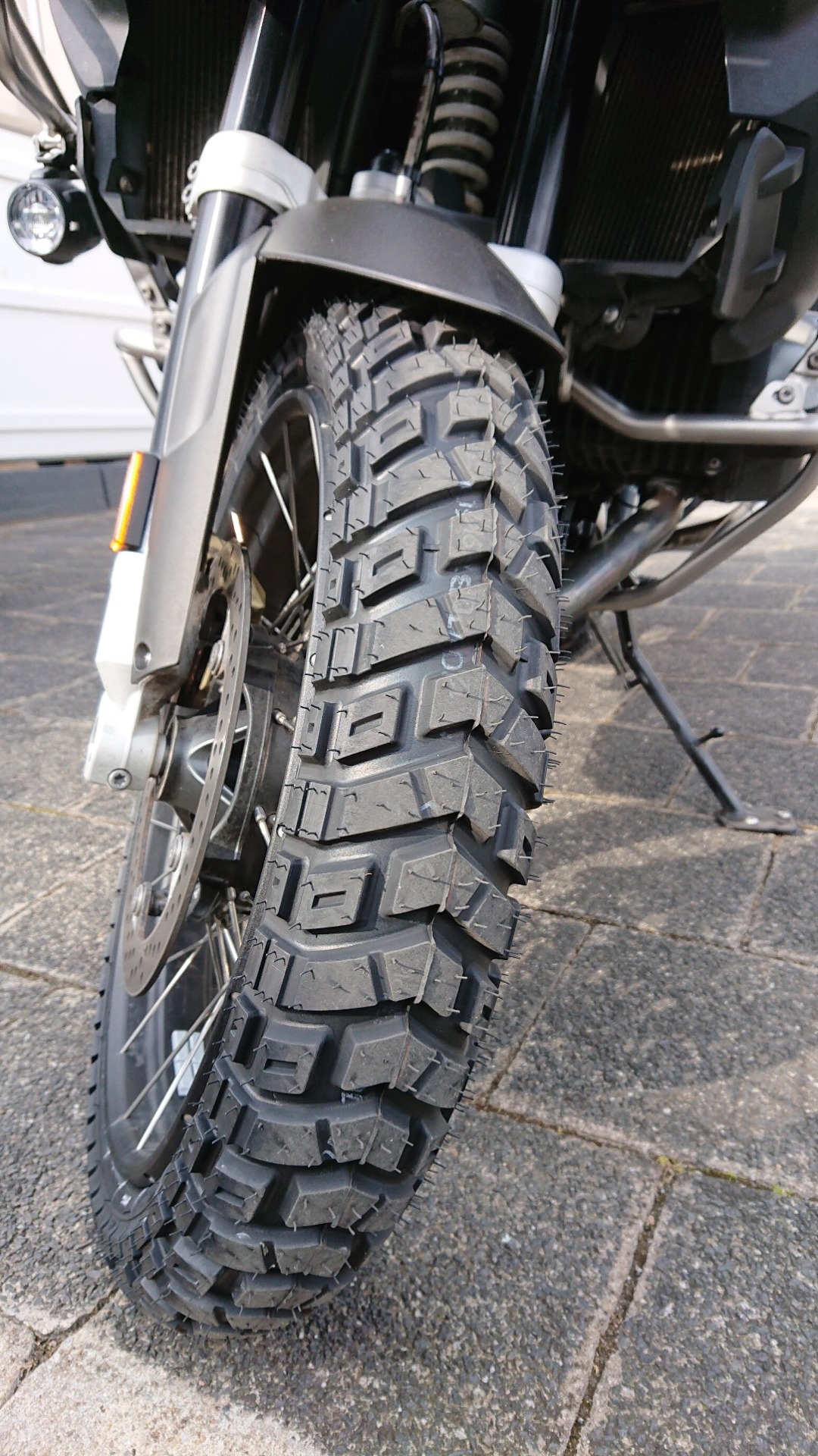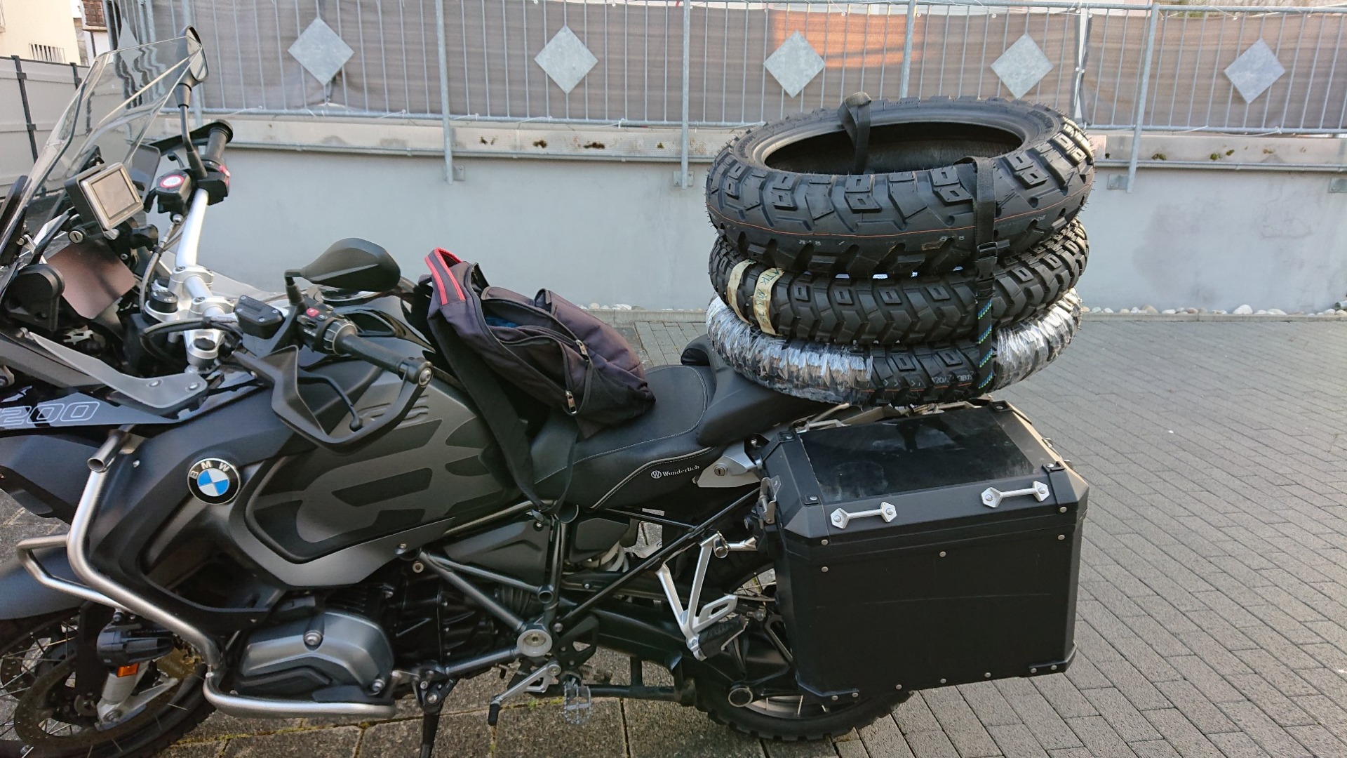 Der Panzer bekam natürlich neue Schlappen. Ich habe mich wieder für die Heidenau K60 Scout entschieden. Die hatte ich bereits in Chile und in Skandinavien drauf und – abgesehen vom Heulen des Vorderrads – keinerlei negative Erfahrungen gemacht. Bei der Gelgenheit wurde auch aus dem Panzer im Sinne des Wortes ein kleiner Sattelschlepper: