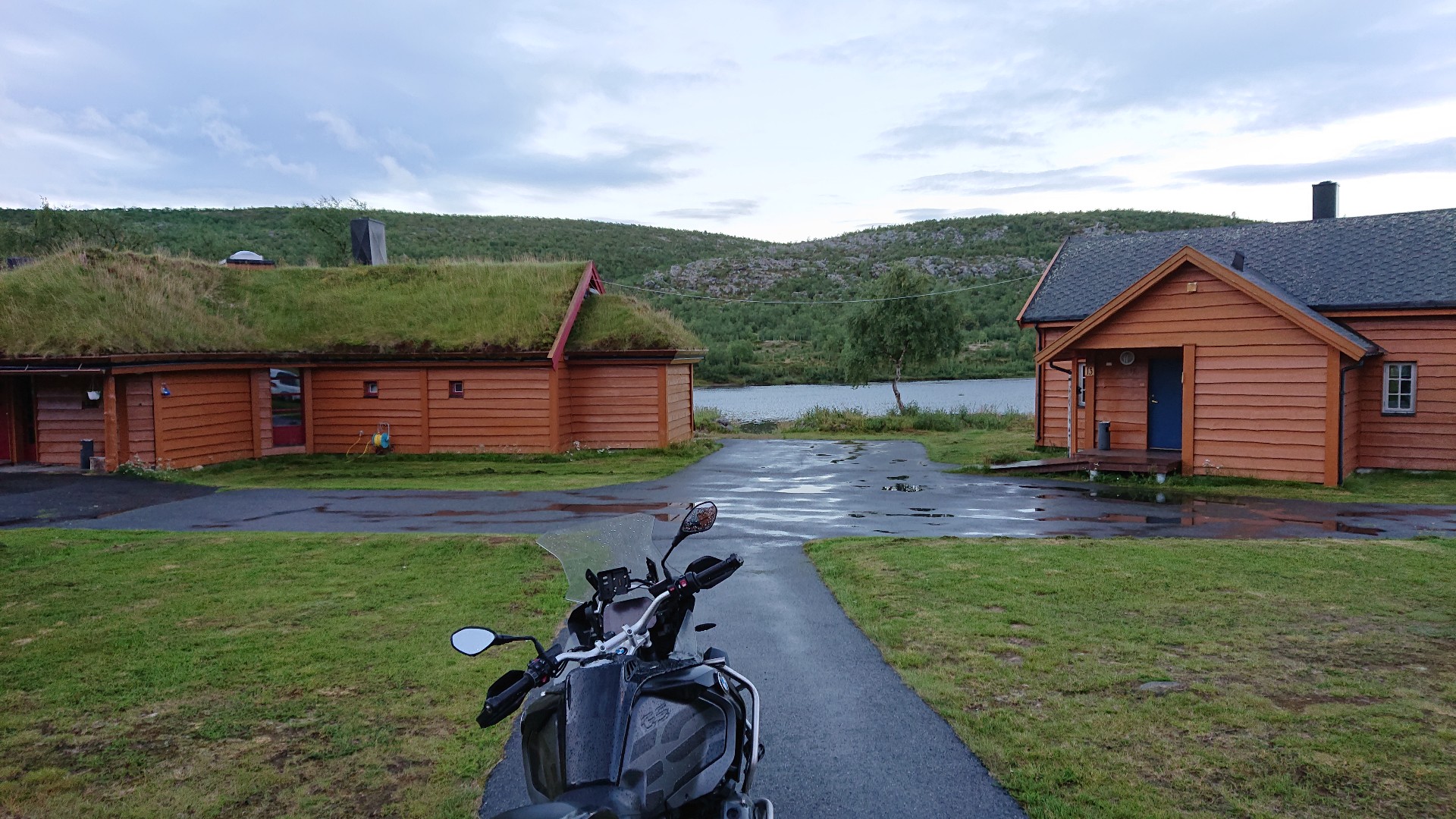 Mein Platz gestern jedenfalls war wirklich irgendwo im Nirgendwo im Norden Norwegens. Eine kleine Anlage mit ein paar Hütten und einer Art Gemeinschaftshaus. Das ganze wirkte aber so, als hätte es schon einige Jahre mehr auf dem Buckel und die guten Zeiten – so es die denn mal gab schon hinter sich. Insgesamt aber alles in Ordnung und vor allem alles funktionstüchtig. Wenn ich mich da an so manche Anlage in Italien erinnere …
