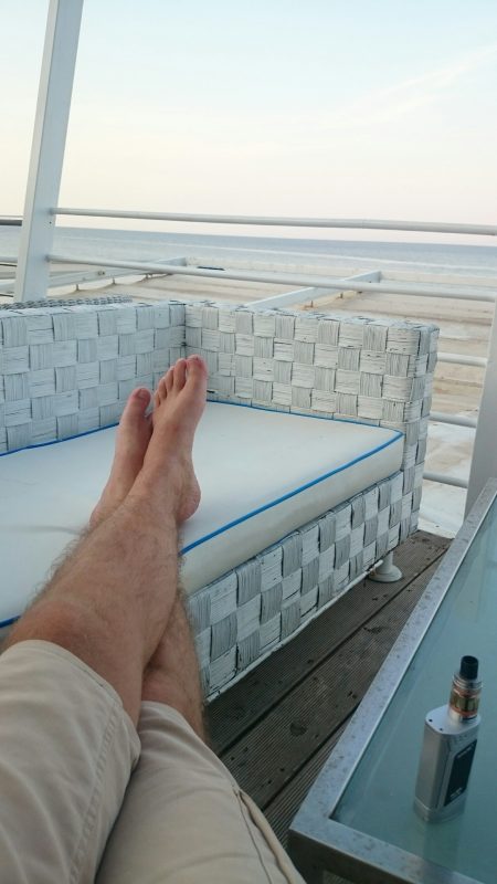 Und zum Abschluss habe ich an diesem Abend die Strandbar bzw. den oberen Bereich davon für meine abendliche Lesesession ganz für mich alleine.