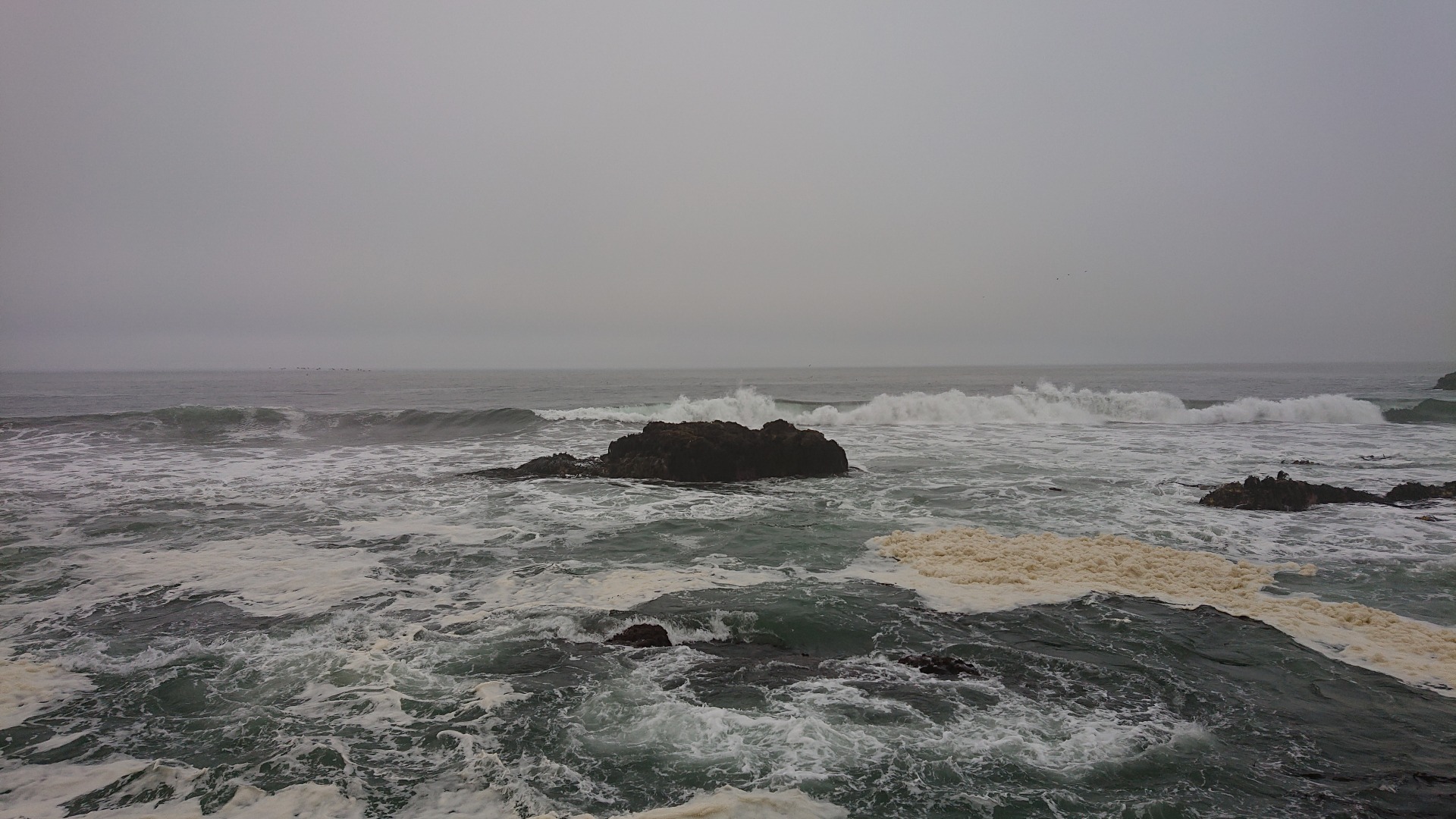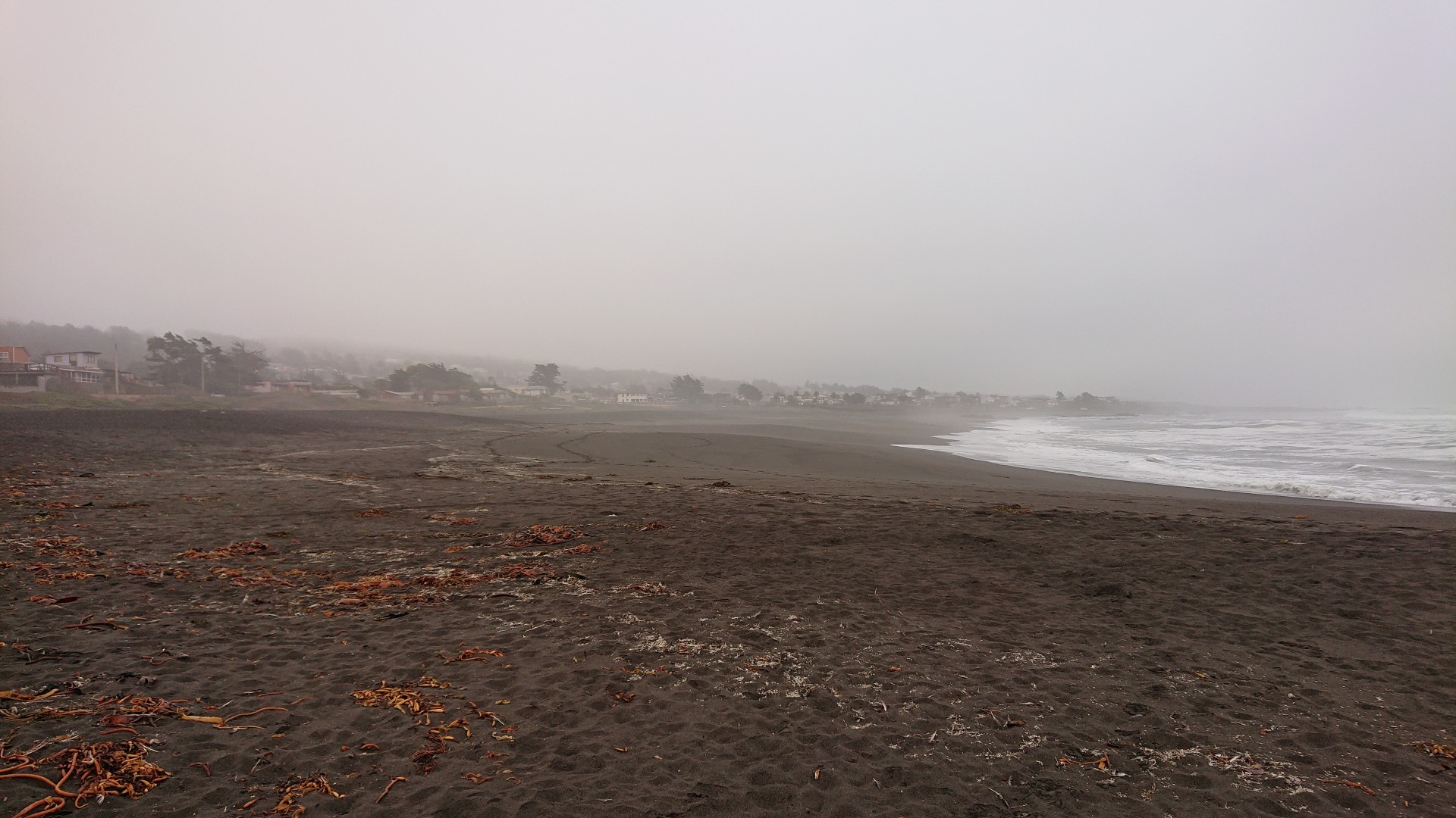 Schmuddelwetter heute morgen in Pichilemu. Nachdem ich relativ früh wach war, bin ich mal eine kleine Runde am Strand bzw. an der Küste entlang gegangen. Letztlich ging es von einem Sandstrand über Felsen zu dem nächsten Sandstrand. Unter anderem habe ich leider auch einen großen, toten Seehund gesehen. Ich hatte gehofft, vielleicht auf lebende zu stoßen, aber das hat leider nicht geklappt. Jedoch bin ich mir sicher, dass das nur eine Frage der Zeit sein dürfte.