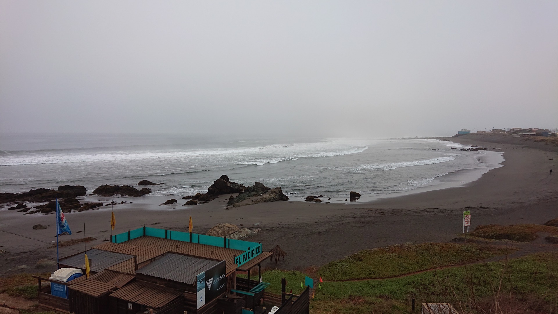 Schmuddelwetter heute morgen in Pichilemu. Nachdem ich relativ früh wach war, bin ich mal eine kleine Runde am Strand bzw. an der Küste entlang gegangen. Letztlich ging es von einem Sandstrand über Felsen zu dem nächsten Sandstrand. Unter anderem habe ich leider auch einen großen, toten Seehund gesehen. Ich hatte gehofft, vielleicht auf lebende zu stoßen, aber das hat leider nicht geklappt. Jedoch bin ich mir sicher, dass das nur eine Frage der Zeit sein dürfte.