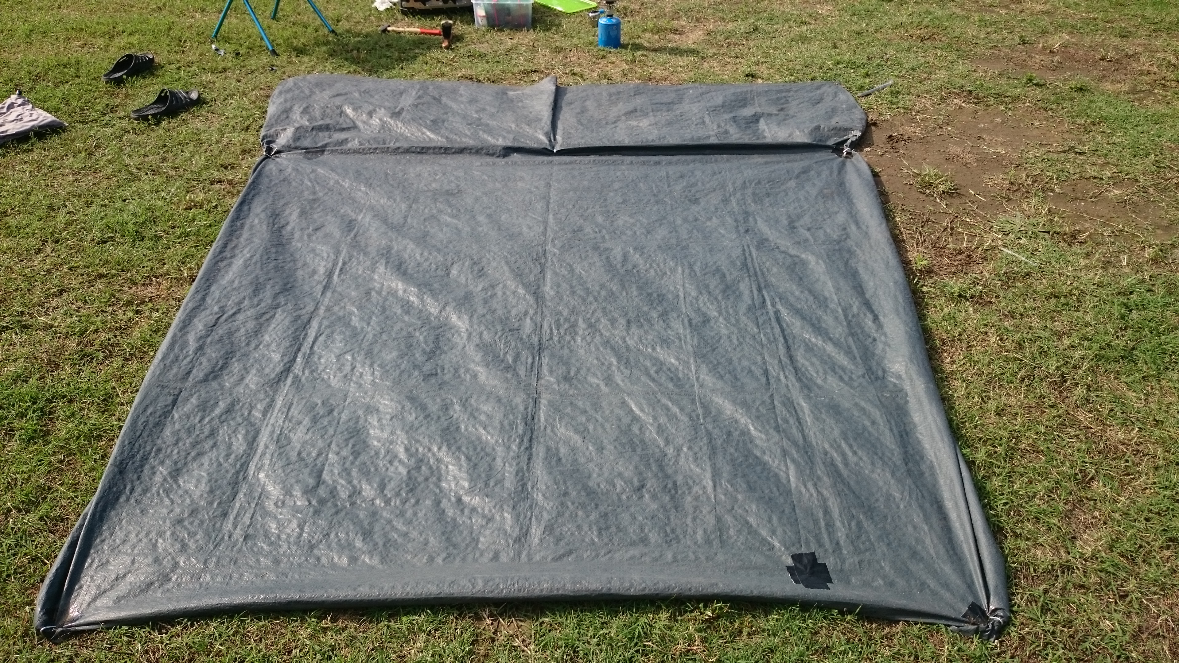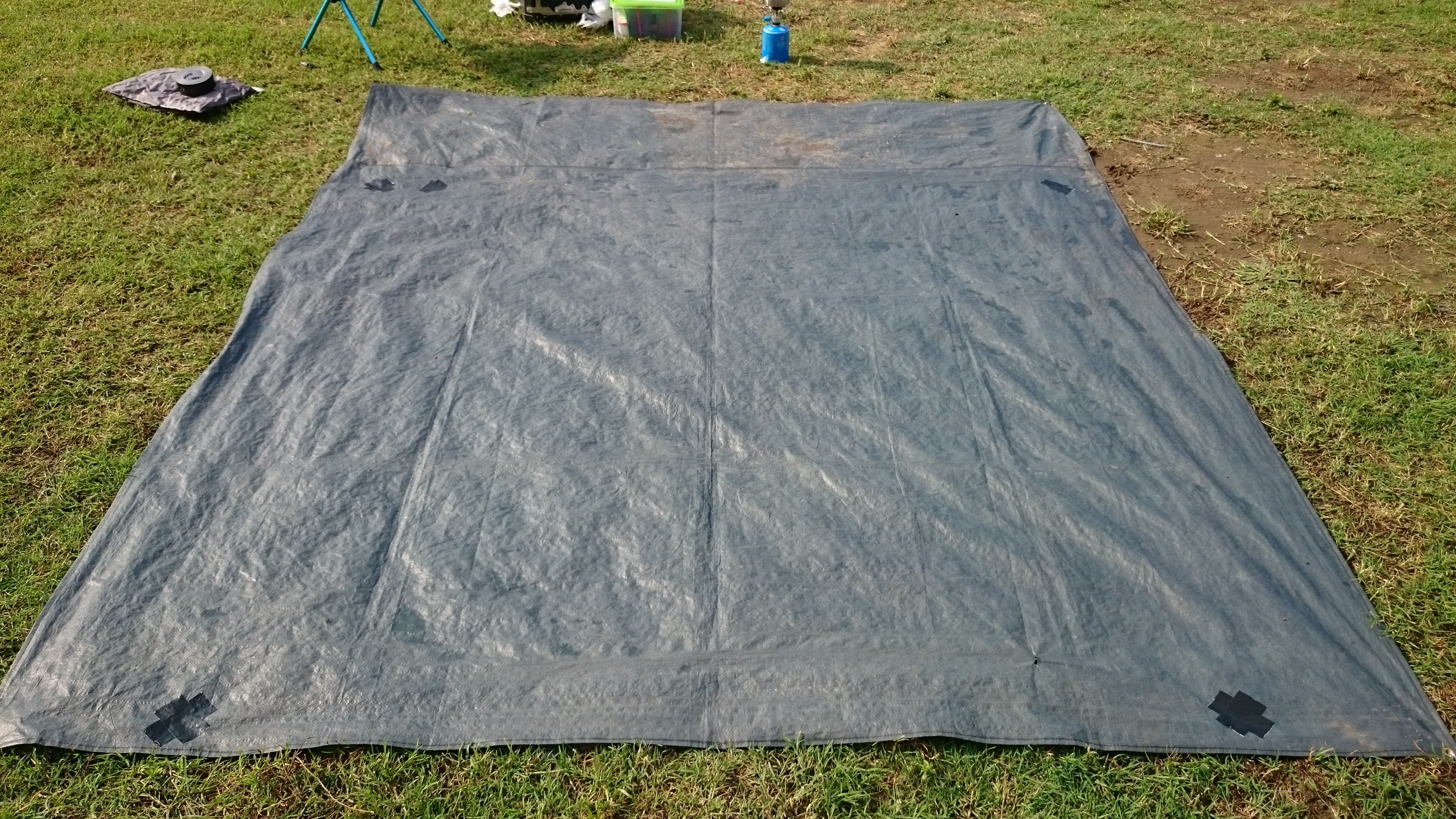 Den Grundriss vom Zelt mit neuen Löchern ziehen und selbige mit Klebeband verstärken, damit nichts einreisst.