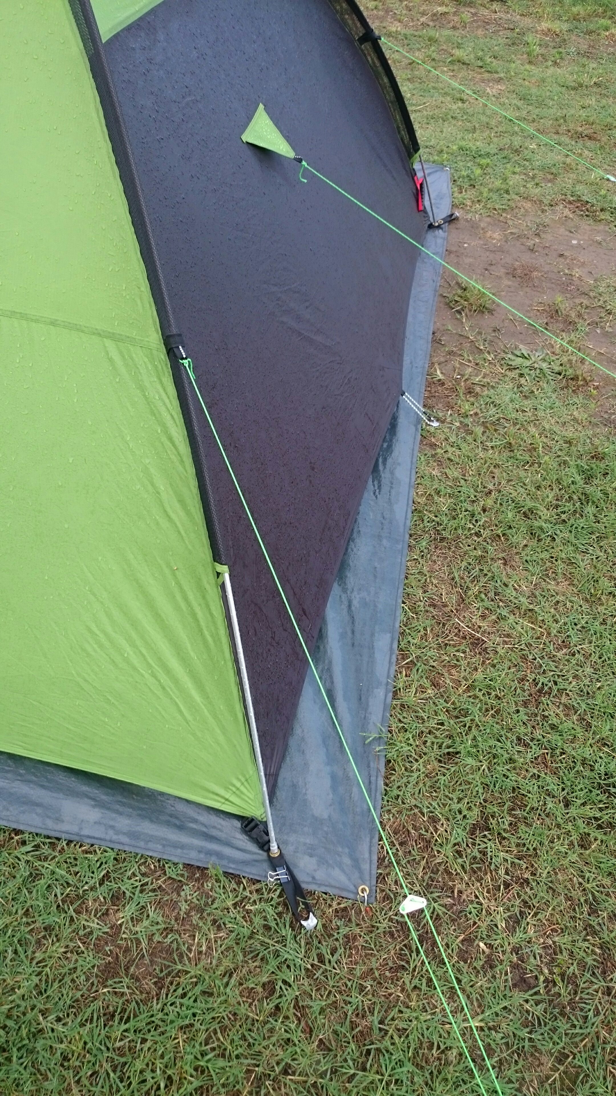 Mal ehrlich: Wie genau soll die Hütte da dicht sein? Das Wasser läuft drunter und hat alle Zeit der Welt, oder zumindest solange das Zelt nicht bewegt wird…, um seinen Weg durch den Boden zu finden.