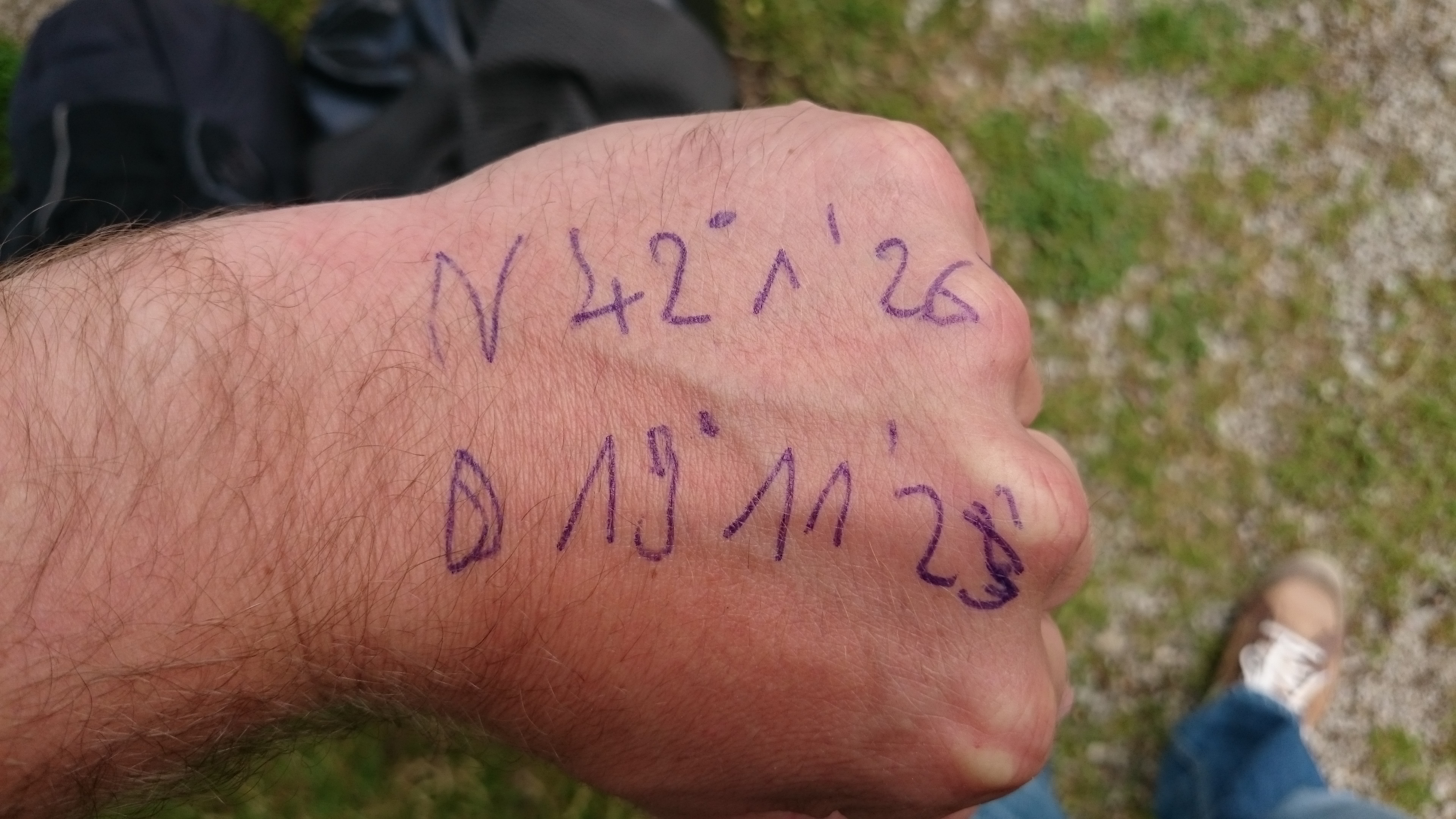 Wenn ich deine Koordinaten auf deinem Handrücken richtig entziffert habe N 42°1’26 E 19°11’23 müsste dein Umfaller hier gewesen sein https://goo.gl/maps/6LAc991R3dr