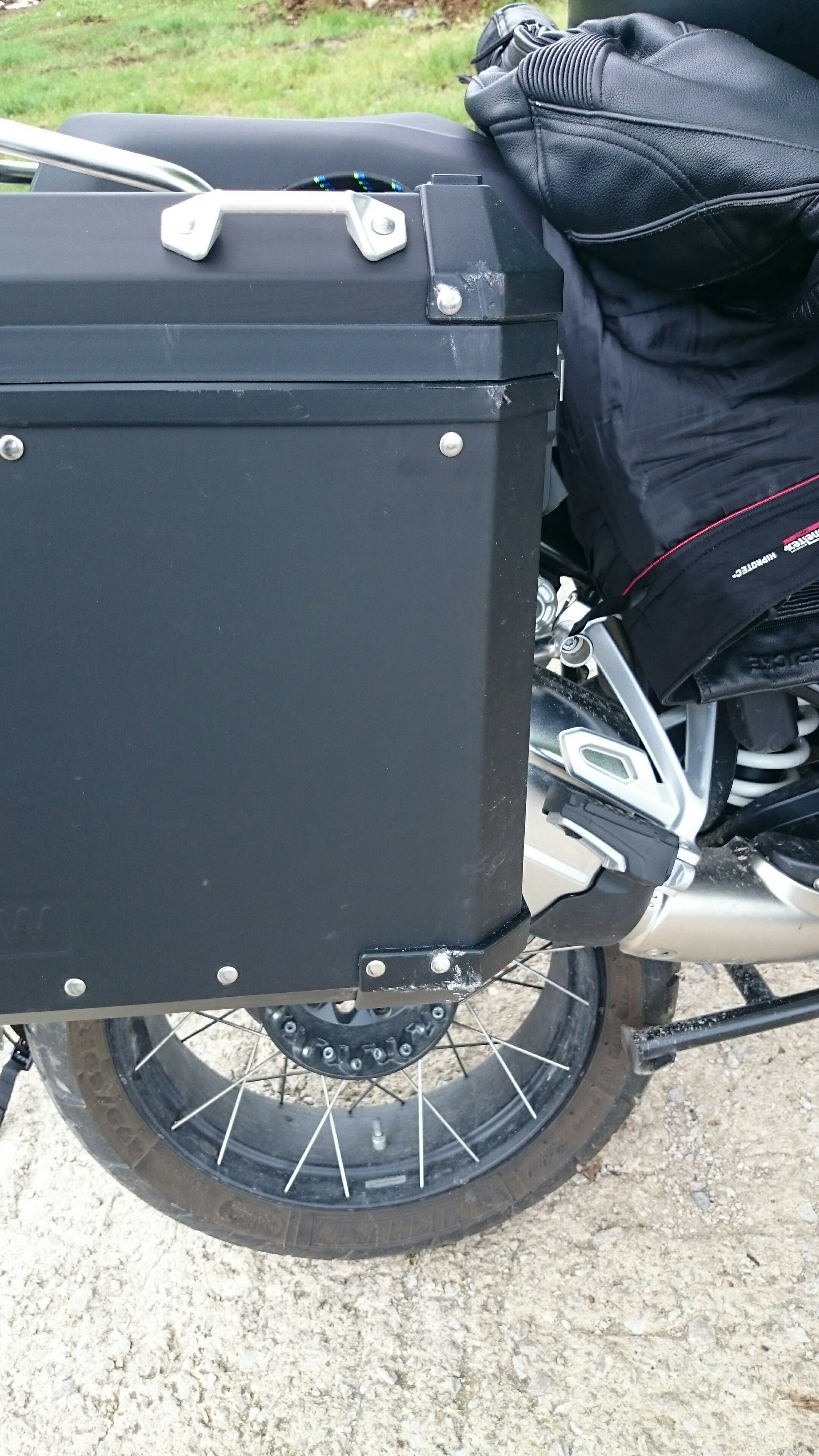 Und last but not least: von etwas verletzem Stolz mal abgesehen, jetzt doch zum ersten Mal ein Motorrad umgeschmissem zu haben, ist mir selber nichts passiert. Vorne (kaputter) Boxermotor, hinten stabiler Alukoffer, dazwischen ist man safe.