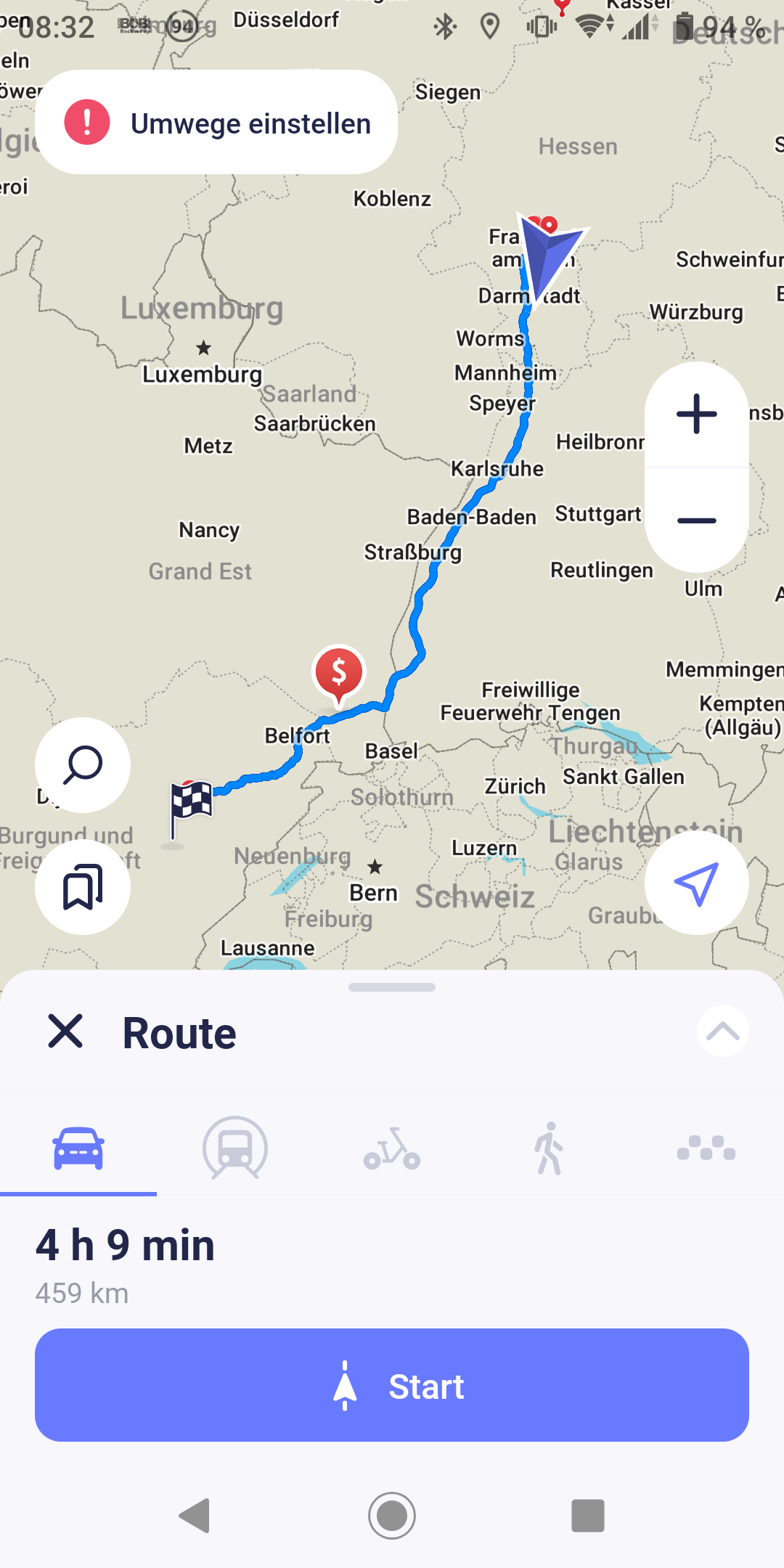 Der grobe Plan war erst einmal Richtung Besancon zu fahren und dann je nach Wetter und Vorrankommen weiter oder kürzer zu fahren: