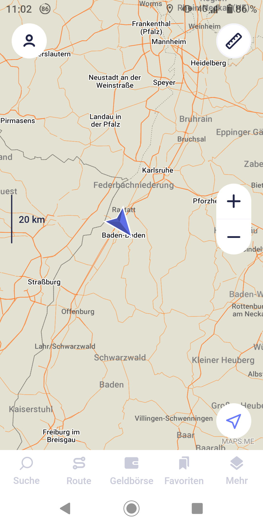 Kurz vor der Grenze fing es dann aber an zu regnen – kein Wunder, wenn man kurz davor ist, nach Frankreich zu fahren. Hinter der Grenze blieb es dann durchgehend nass, mal weniger, mal richtiger Dauerregen. Unterwegs habe ich dann überlegt, wie weit ich noch fahre: