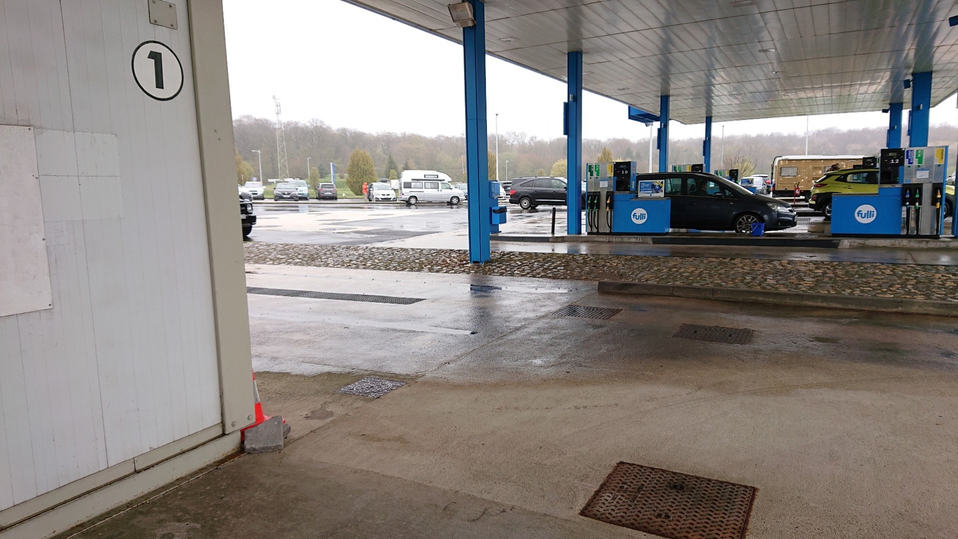 Kurz vor der Grenze fing es dann aber an zu regnen – kein Wunder, wenn man kurz davor ist, nach Frankreich zu fahren. Hinter der Grenze blieb es dann durchgehend nass, mal weniger, mal richtiger Dauerregen. Unterwegs habe ich dann überlegt, wie weit ich noch fahre: