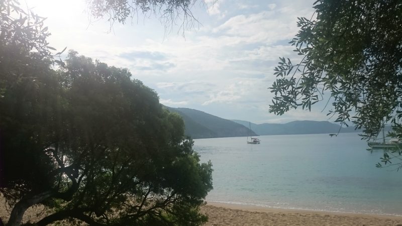 Es ist noch recht kühl (also so 23 24 Grad), leichter Wind vom Meer, Sonnenstrahlen durch die Olivenbäume, leichte Meeresbrandung, hier mal ne Möwe, da mal ne Krähe, Kleinvogelvieh hopst ueber den mit alten Oliven ausgelegten Boden, ein Hund rennt am Strand rum und die eine oder andere Ameise versucht wieder einmal, in meinem grünen Tee Selbstmord zu begehen.