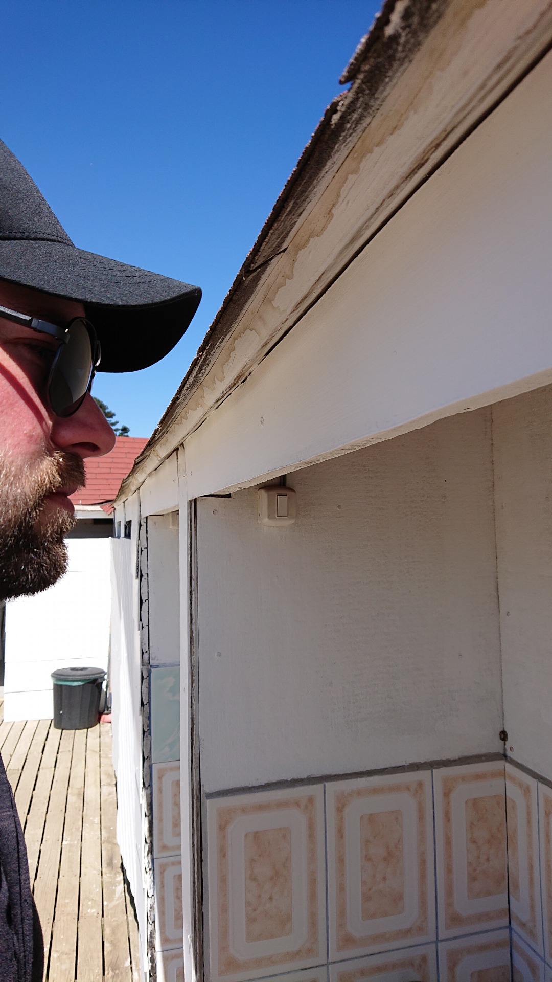 Das hier ist nichts für Mitteleuropäer. Unten mal zur Veranschaulichung die Höhe des Eingangs zum Duschraum/Toilettenraum. Der Schirm der Mütze liegt oberhalb des Daches. Dementsprechend bin ich heute auch schon einige Male mit der Stirn gegen den Balken gedonnert …