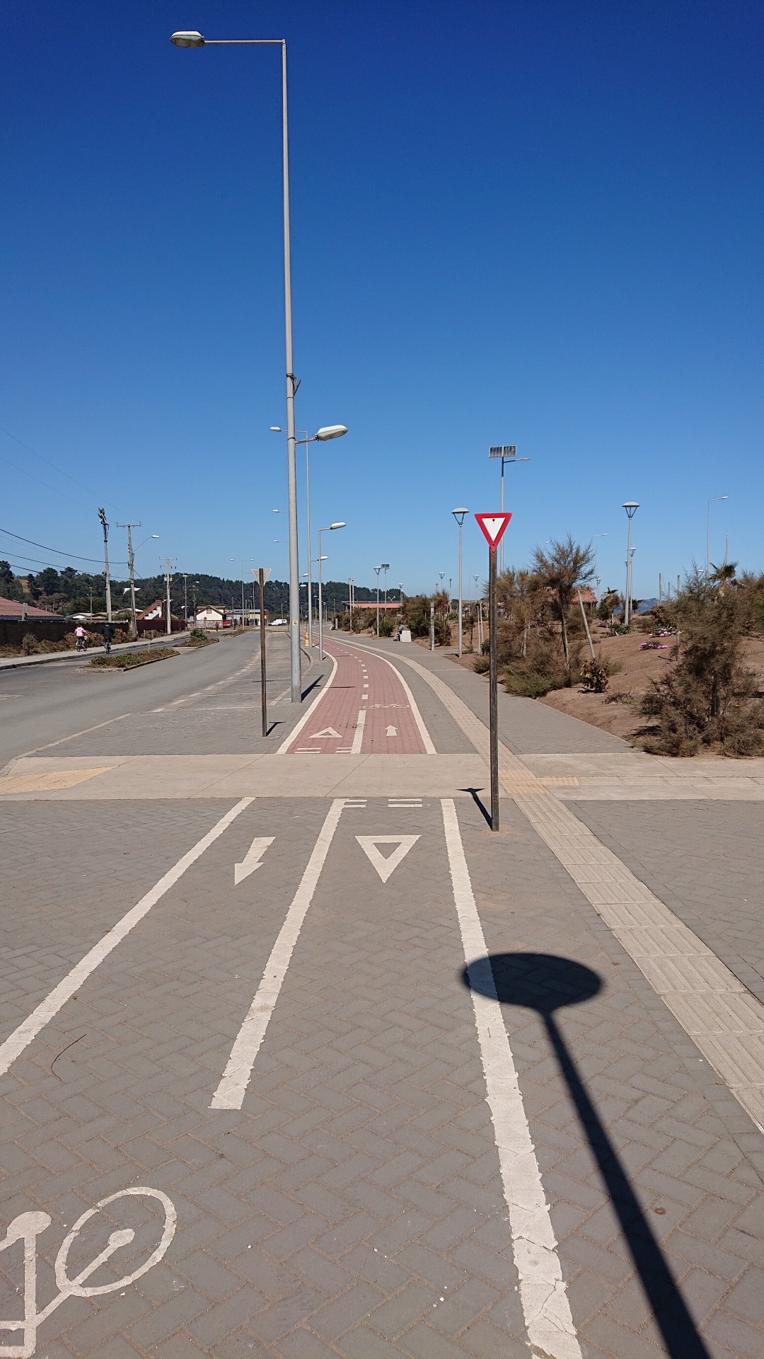 Und das hier ist richtig spitze: Der Fahrradweg hat kleine Vorfahrt-Achten-Schilder, damit man die kreuzenden Fußgänger nicht einfach umfährt. Irgendwo kann man es dann doch auch übertreiben …