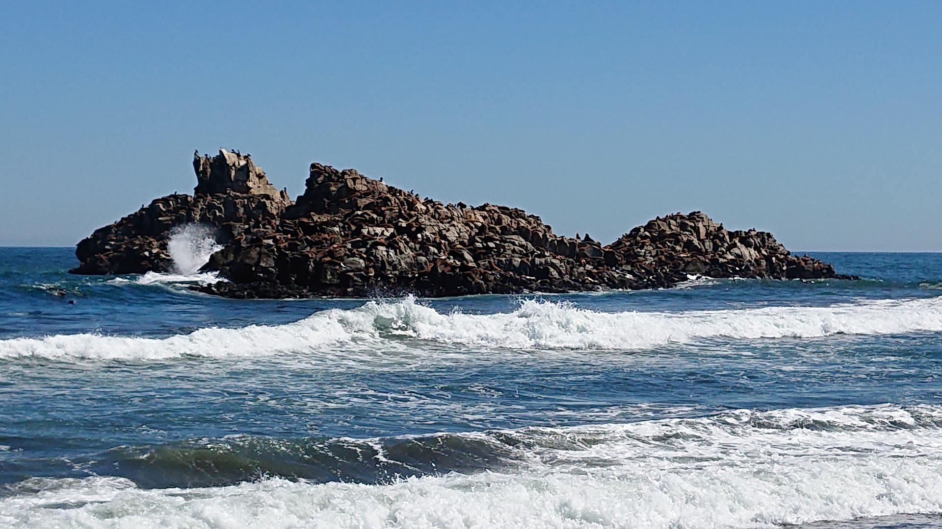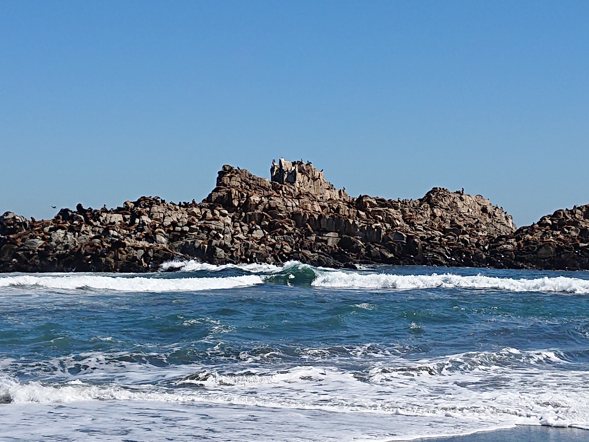Und hier sitzen die Kollegen, die auch heute Nacht schon viel Theater gemacht haben. Meine Vermutung war richtig. Die Felsen sind komplett mit Seelöwen bevölkert.