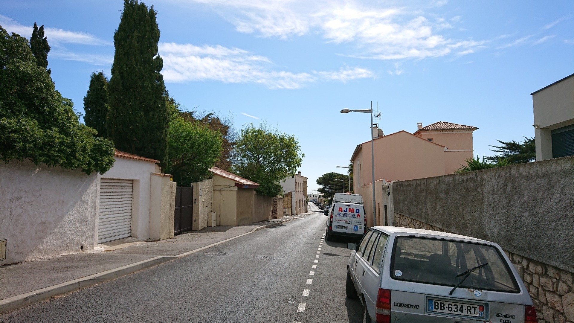 In Sète selbst bin ich dann hoch auf den Mont Saint-Clair. Mein Navi führt mich ja gerne durch ganz besondere Wege, das kenne ich bereits von früher. Das war stellenweise steil, da wäre (bergauf) Anhalten eine ganz schlechte Idee gewesen. Aber ich war zeitig unterwegs, kein wirklicher Gegenverkehr. Fotos konnte ich leider nicht machen, die Sache mit dem Anhalten …