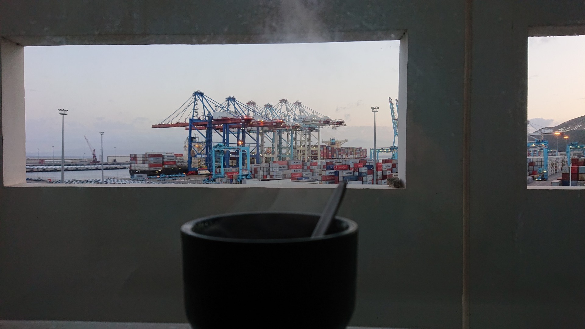 Das ermöglichte mir dann ein wenig Hafenromandig mit dem guten Instantkaffee. Auf grünen Tee habe ich ob der Zeit mal verzichtet.