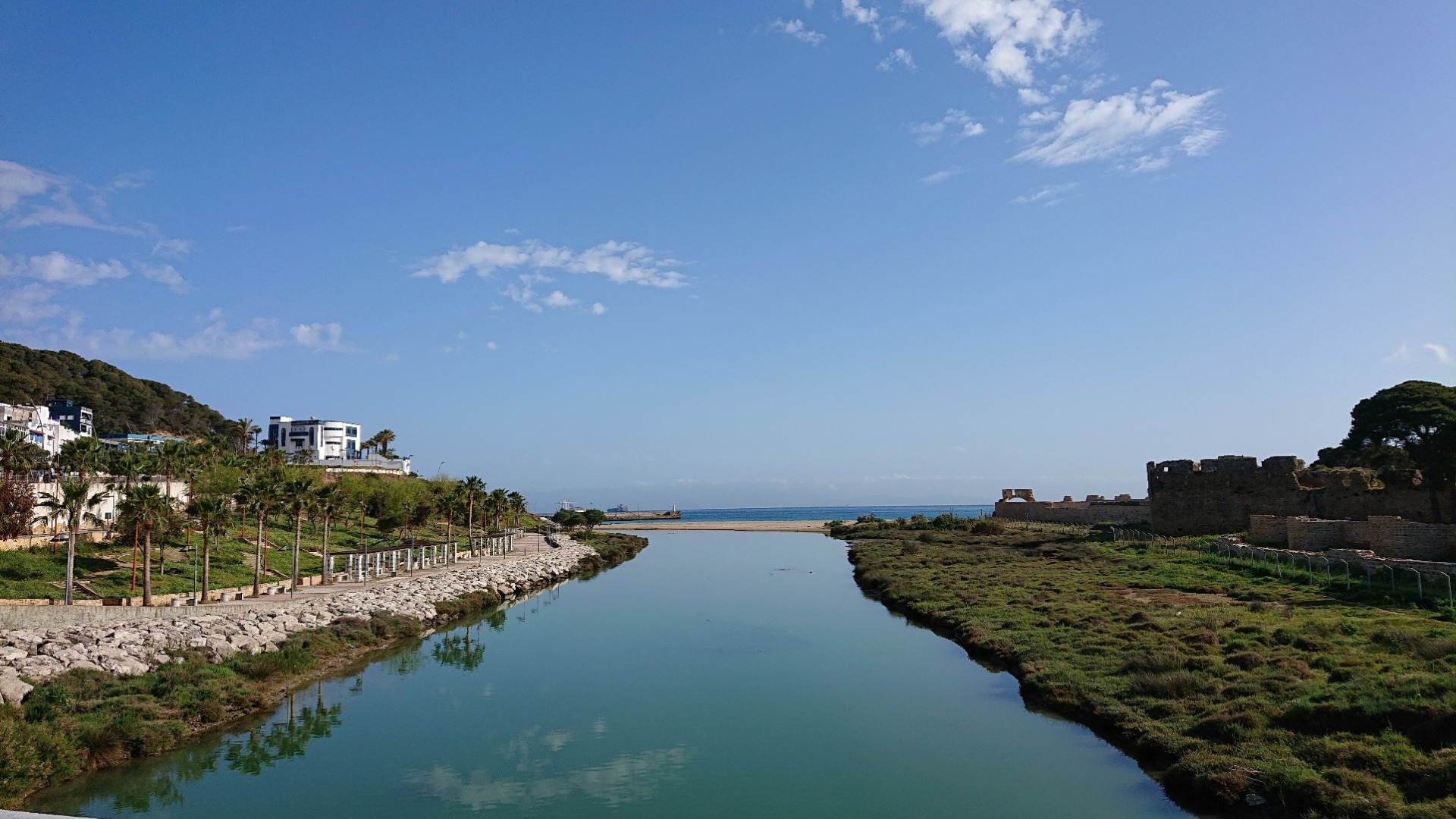 Zuerst ging es Richtung Tanger. Dort wollte ich zu einem Einkaufszentrum, um mich mit einer SIM-Karte von Marokko Telekom (soll die beste Abdeckung haben) und etwas Proviant, vor allem Wasser und Brot einzudecken. Auf dem Weg dahin bin ich eine ganz nette Küstenstraße gefahren und habe unterwegs auch noch direkt getankt: