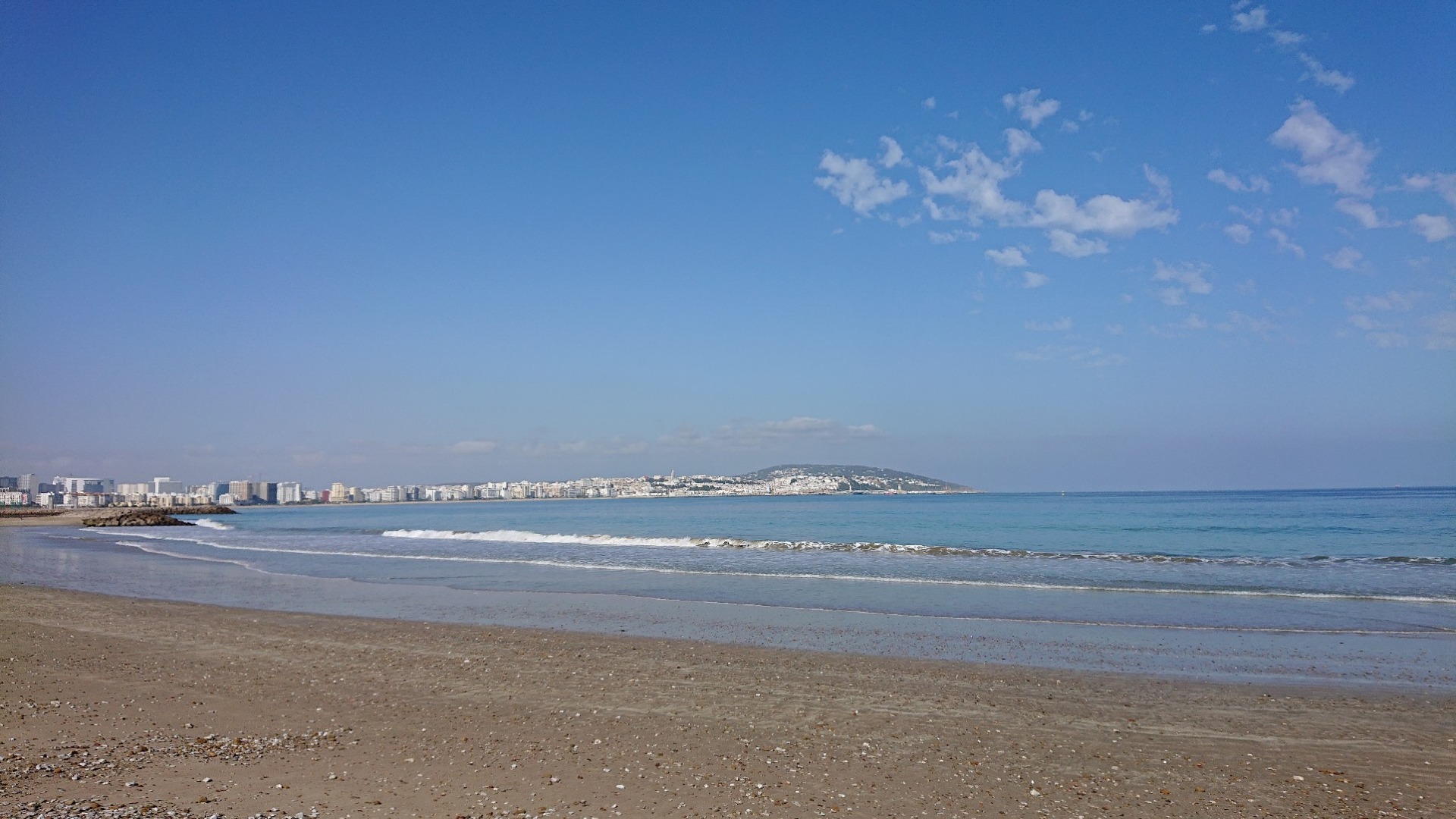 In Tanger ging es dann in das Einkaufszentrum. Geöffnet hatte aber nur der Supermarkt, alle anderen Geschäfte waren noch geschlossen. Offensichtlich machen die erst um 10 bis 10:30 Uhr auf. Also ein bißchen Proviant organisiert und mir eine Cola gekauft. Die Cola-Dose habe ich dann direkt draußen auf dem Parkplatz kaputt gemacht. Wie das passiert ist, hab ich auch nicht so richtig kapiert. Da ich aber keine Lust hatte, auf 10 bis 10:30 Uhr zu warten (ich war so ca. 9 Uhr da), bin ich dann weiter die Küste entlang gefahren.