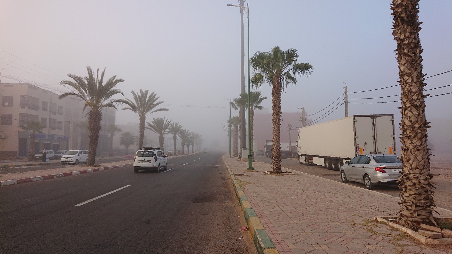 Bis Tiznit war die Straße ziemlich langweilig. Viel gerade aus und immer wieder durch ein paar Ortschaften. Das einzige spannende war plötzlich aufkommender Nebel – bei guten 18 – 19 Grad: