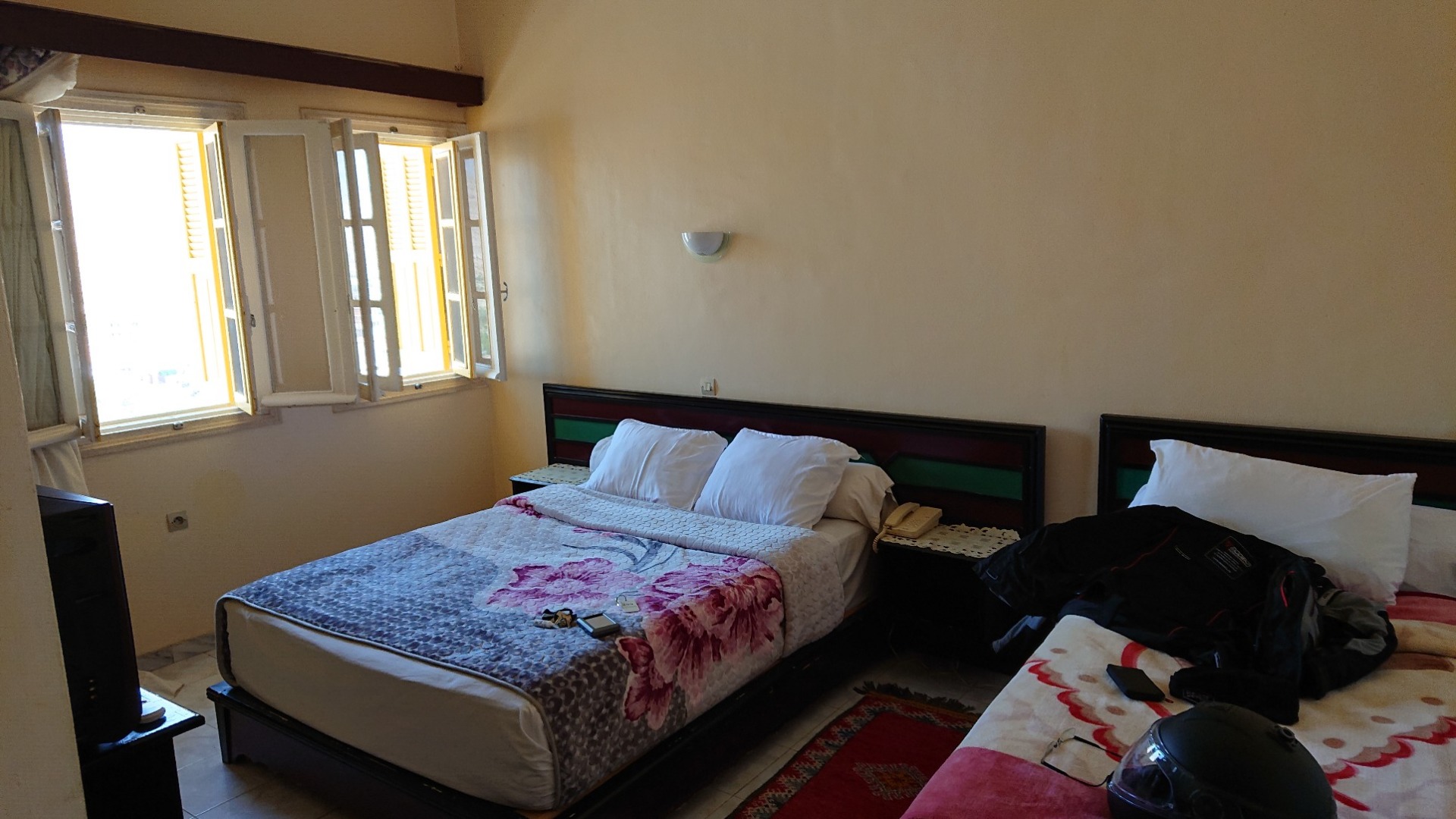 Meine Unterkunft in Agadir lag direkt gegenüber einer Polizeistation. Für die Größe der Bude war da durchgehend eine ganze Menge Betrieb. Unter anderem kam mehrmals ein Polizei-Abschlepp-LKW mit blinkendem Polizeilicht und allem Brimborium vor der Hütte entlanggefahren. Der hatte einige Roller hinten aufgeladen. Lustiger Punkt dabei: Einer der Roller war mit einer von diesen Nachrüstalarmanlagen ausgerüstet, die nacheinander alle möglichen Soundmodule durchspielt. Dabei blinkte das Teil auch ganz motiviert. Das ansich ist ja noch nicht wirklich lustig. Der lustige Punkt: Jedes Mal, wenn der Polizei-Abschlepp-LKW unten seine Runde drehte (mit mehreren Stunden Abstand), war der Roller noch hinten drauf und veranstaltete sein Theater. Da wurde die Alarmanlage durch Agadir spazieren gefahren und den Fahrer des LKWs juckt das offensichtlich kein Stück. Ab und zu kamen dann Polizeiautos an und haben Leute in die Bude geführt, später kamen dann andere Polizeiautos und haben wieder welche abgeholt. Hier und da kam auch mal jemand vorbei und hat sich offensichtlich lautstark über irgendwas beschwert – vielleicht über die Abwesenheit des Rollers mit der so sündhaft teuren Alarmanlage Marke Ali-Express, man weiß es nicht. Wie gesagt, da war ganz gut Betrieb. Hier mal ein Schnappschuss aus den frühen Morgenstunden: