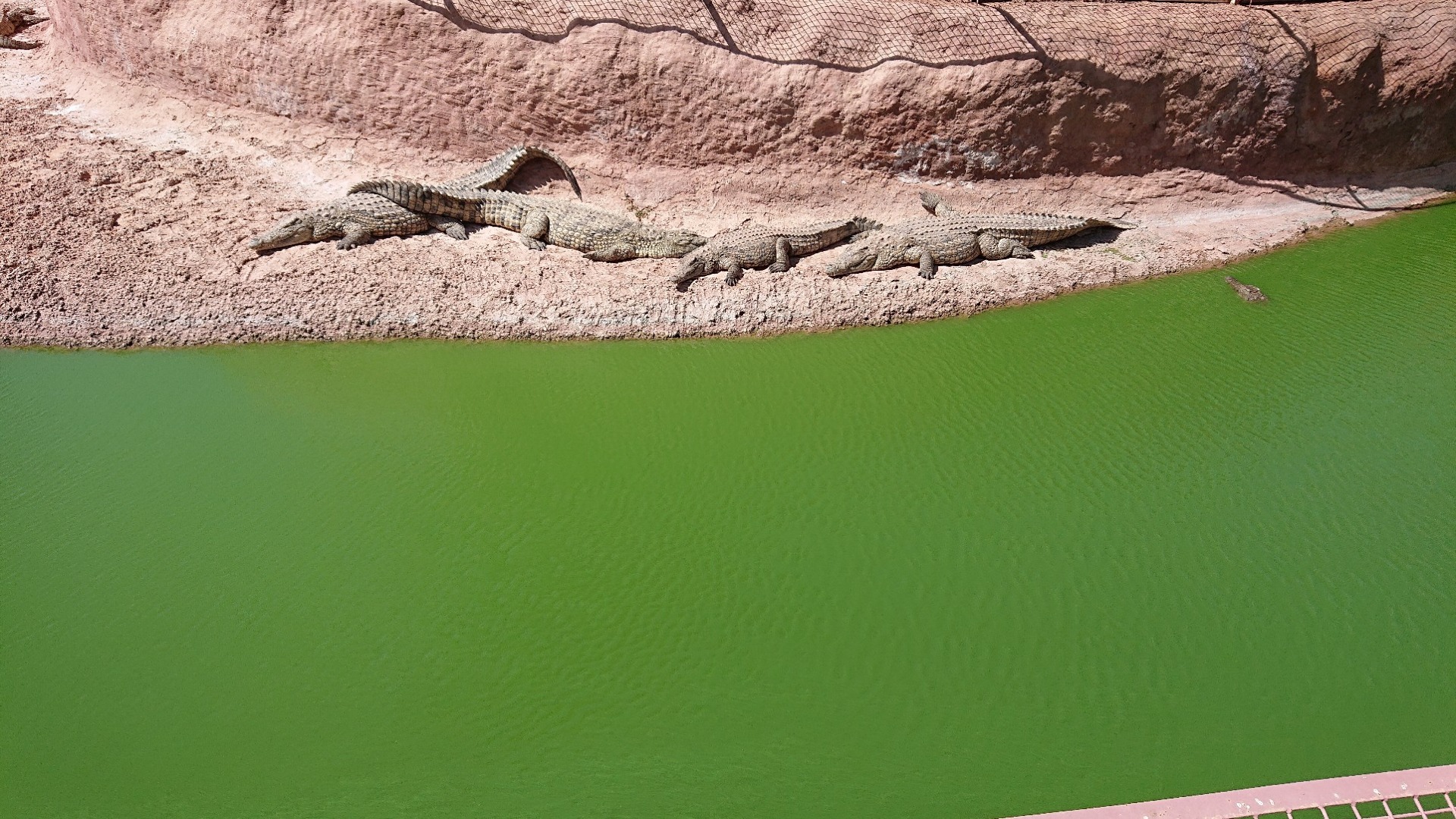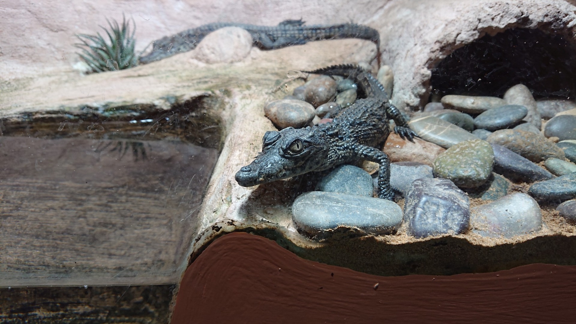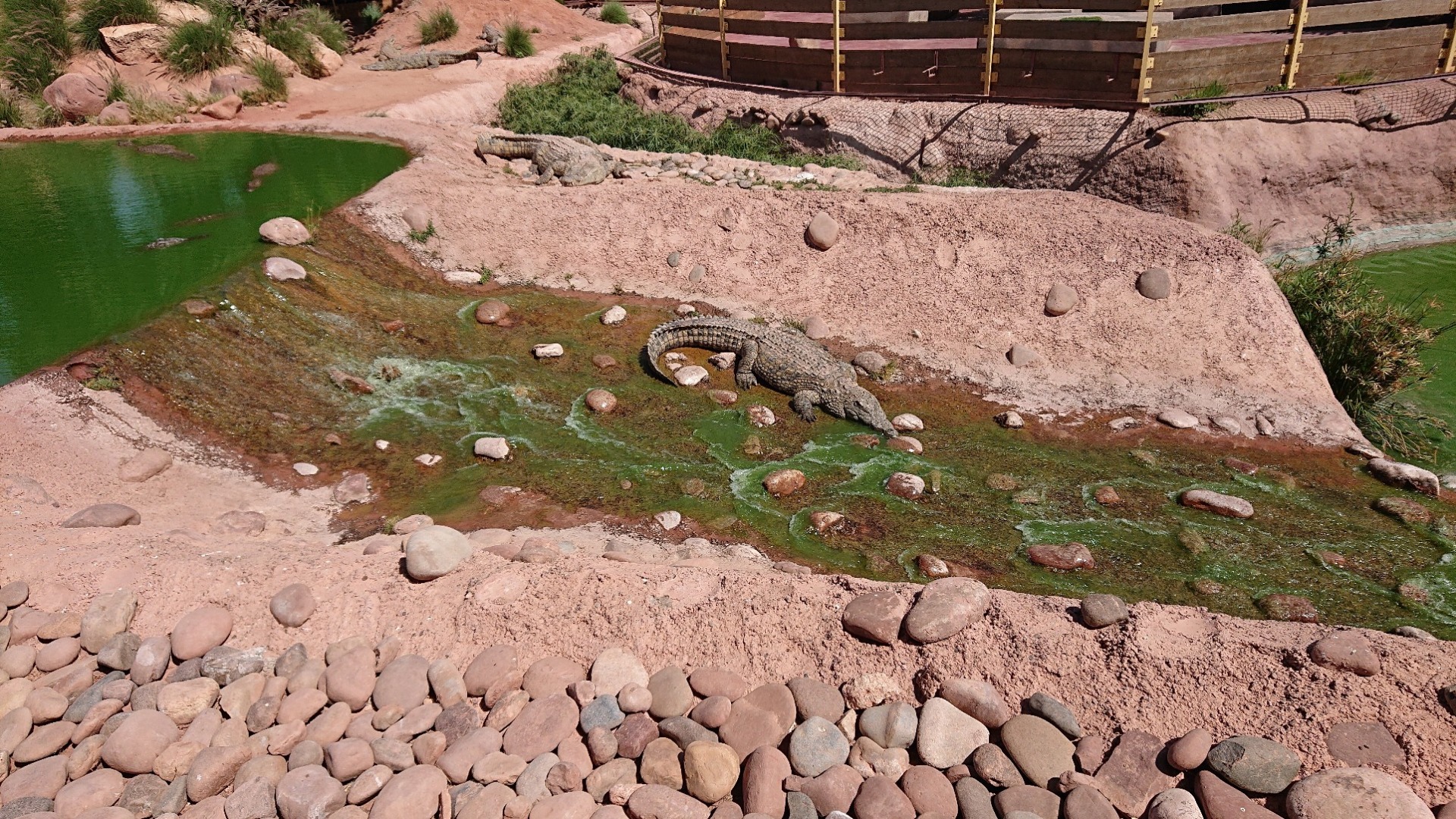 Stattdessen bin ich in so ein kleines Krokodil-Gehege: