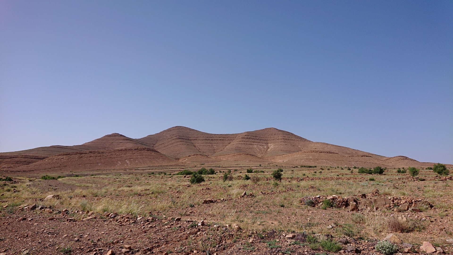 Ein längeres Stück ungefähr in der Mitte der zweiten Strecke scheint längerfristig Wasser abzubekommen. Da war dann mitunter relativ viel Grün zu sehen und zahlreiche Marokkaner waren mit oder ohne Esel unterwegs und haben büscheweise Tierfutter gesammelt. Hier mal ein paar Eindrücke, wobei ich die Bewohner selbstverständlich nicht fotographiert habe: