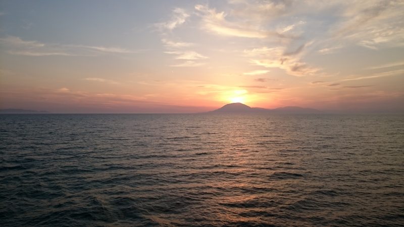 Gestern auf der bis unter das Dach gefüllten Fähre (ich dachte mir dabei: wenn wir jetzt sinken, lohnt sich das wenigstens) gab’s noch einen kleinen Schnappschuss, Schmolzette und so: